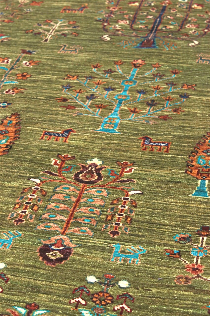 Long pile Berber carpet green, handmade 254x170cm