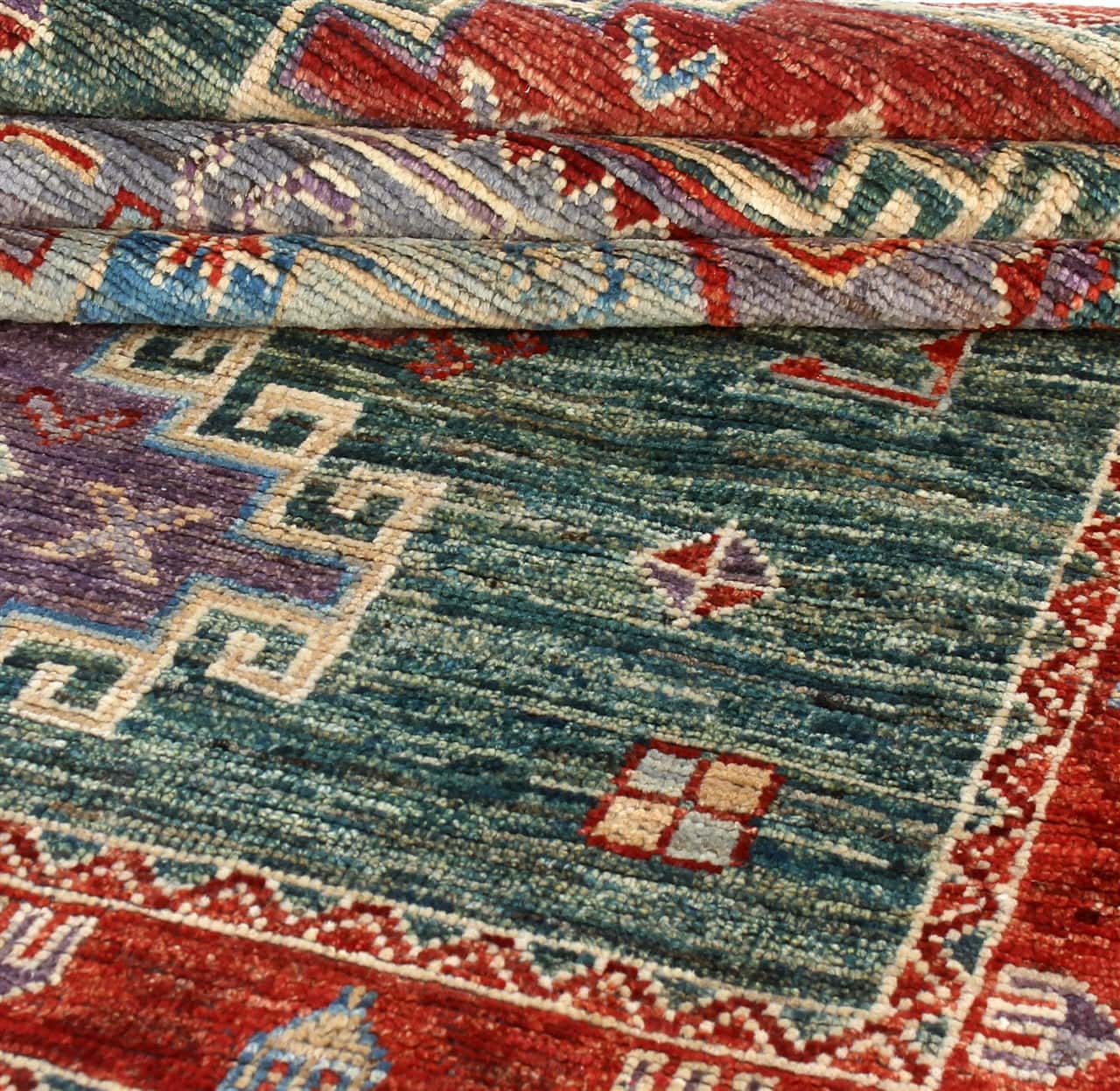 Classic Kazak carpet, Green, handmade, 196x148cm