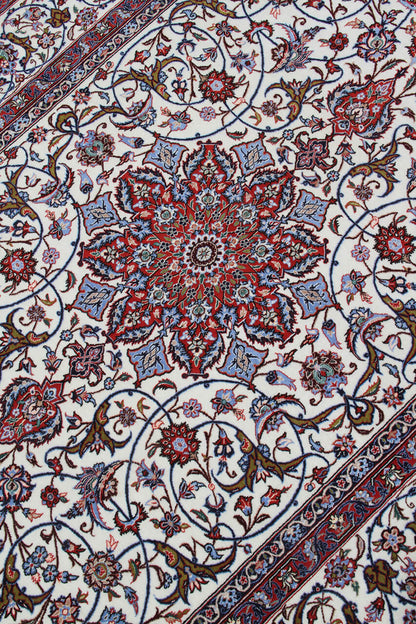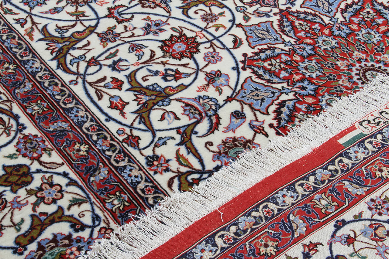 The carpets of the city of Isfahan (Iran) are the best carpets considering design, raw materials and production. They are fine rugs, often characterized by a high density of knots that are sometimes created on a silk warp. The raw materials (mainly wool) and the colors are of the highest quality. Design usually consists of medallions with palmettes and arabesques, but there are also figurative motifs.