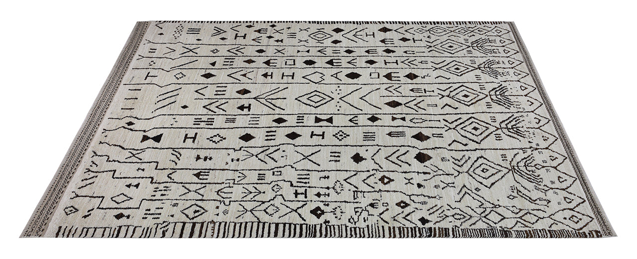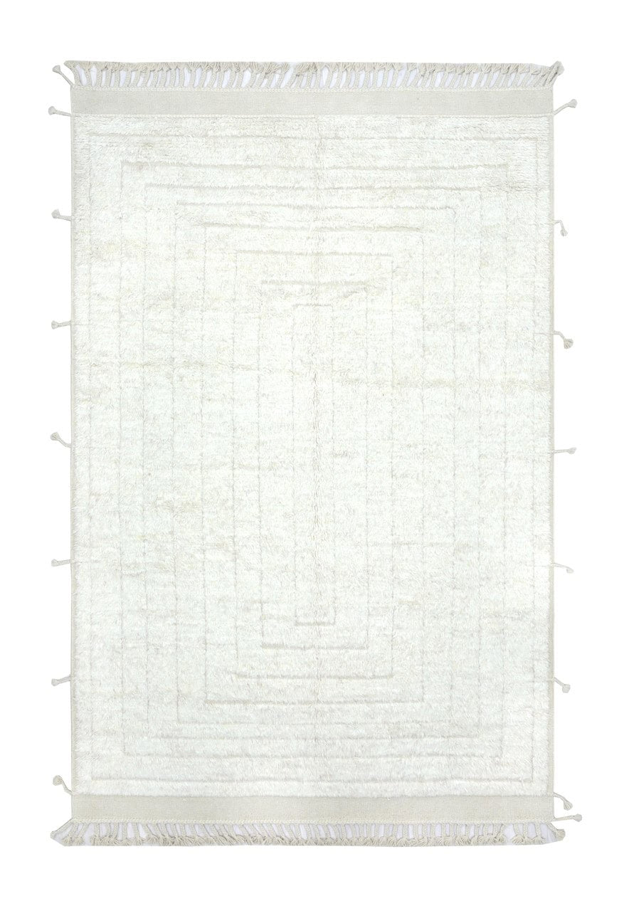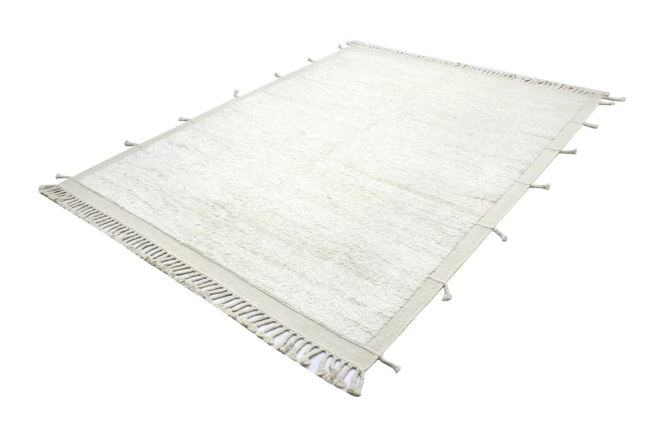Modern design white plain Berber style carpet, handmade 187x124cm