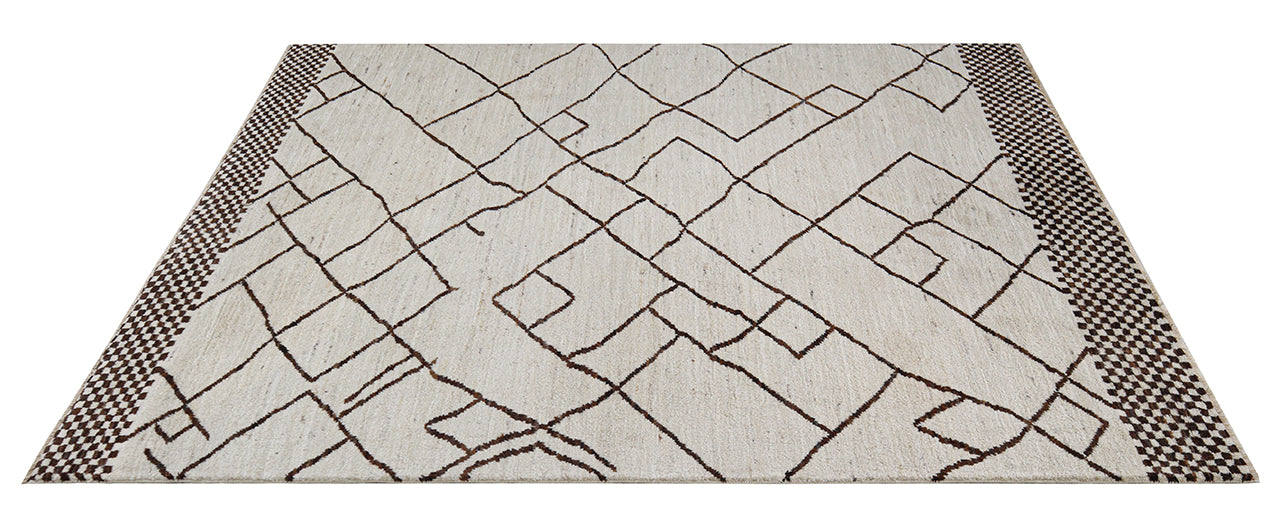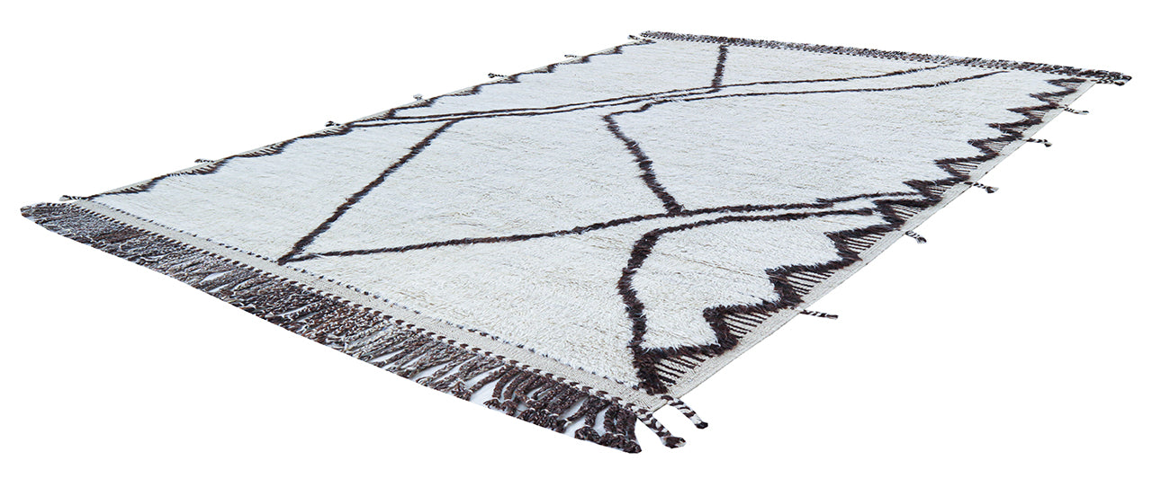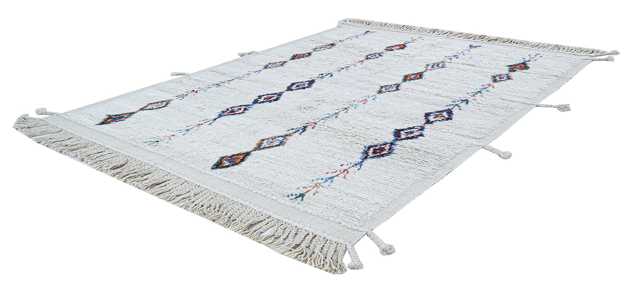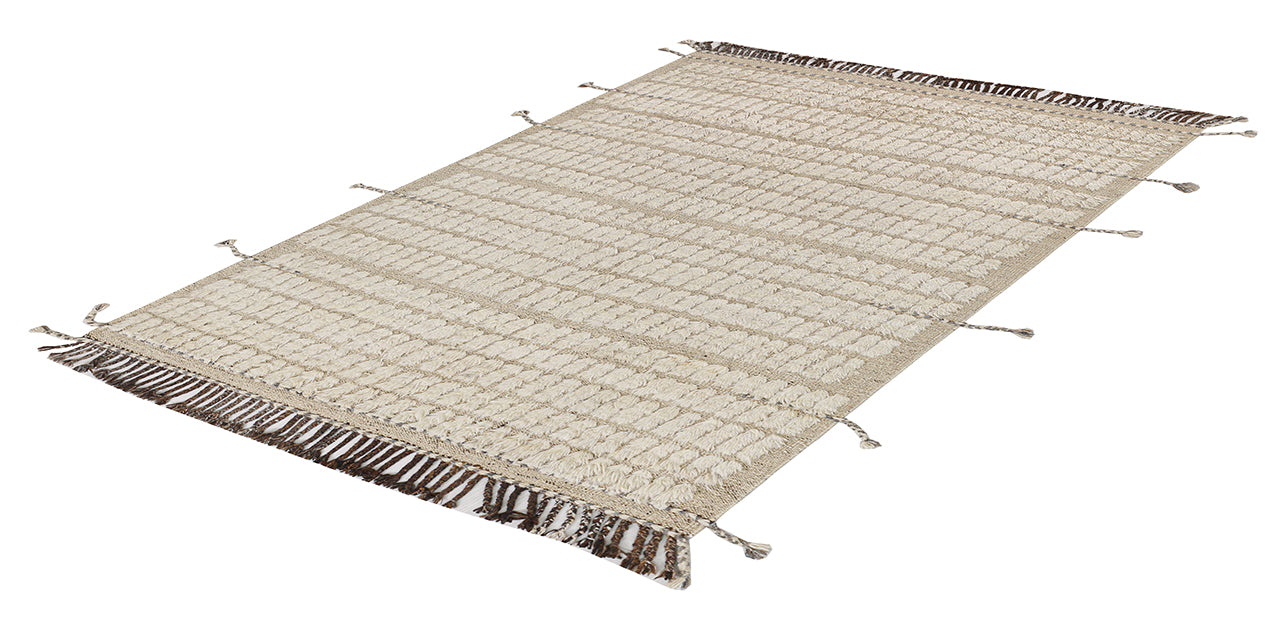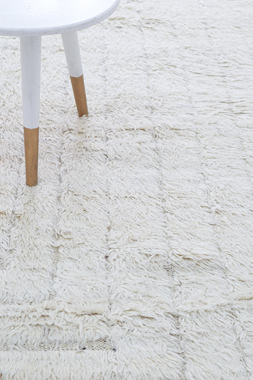 Modern design white Berber style carpet, handmade 243x186cm